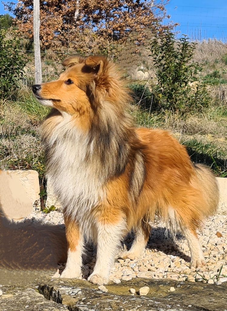 Il était difficile de trouver dans la région un berger de shetland avec un caractère affirmé, vif et ayant conservé son instinct de race bergère mais aussi un shetland correspondant aux critères du standard tout en étant excempt des problèmes de santé que peut avoir un shetland.